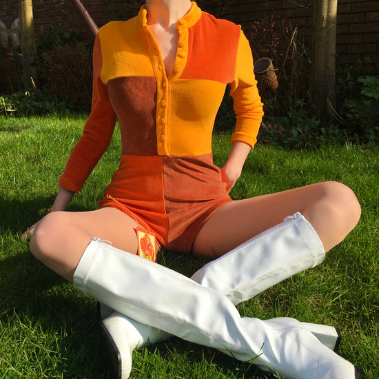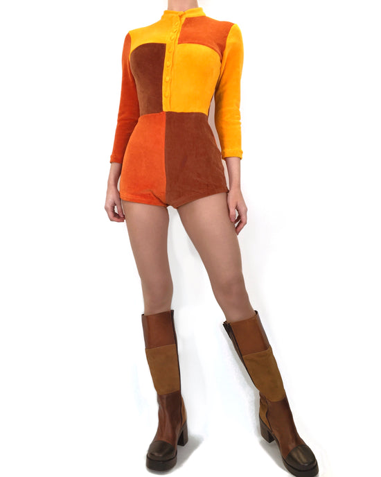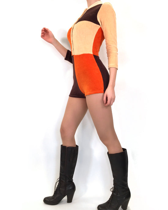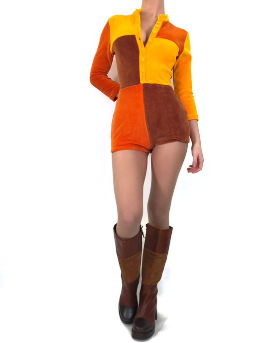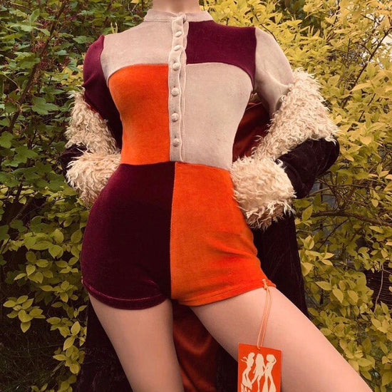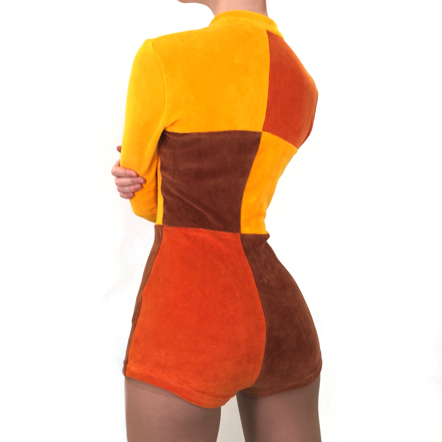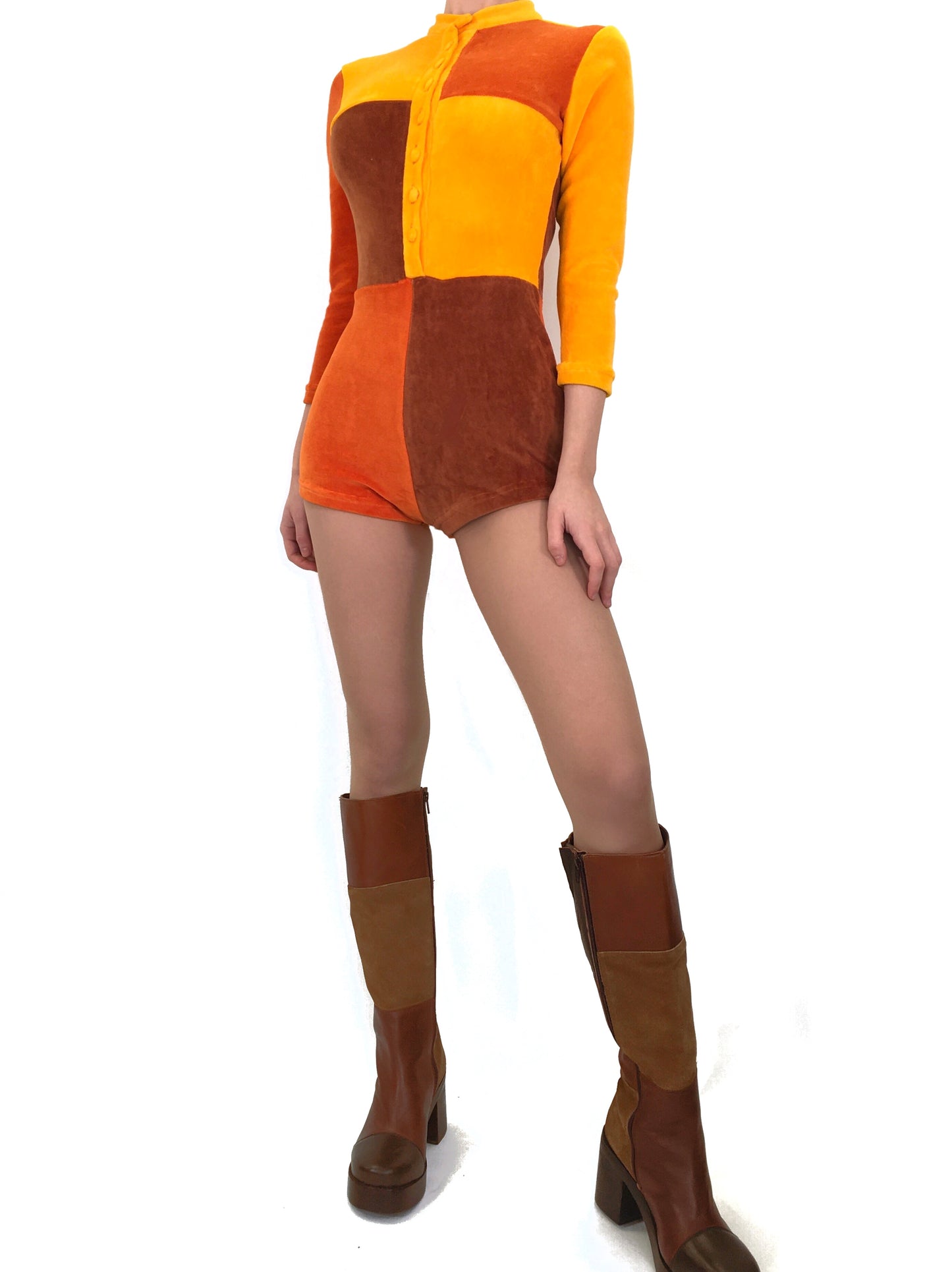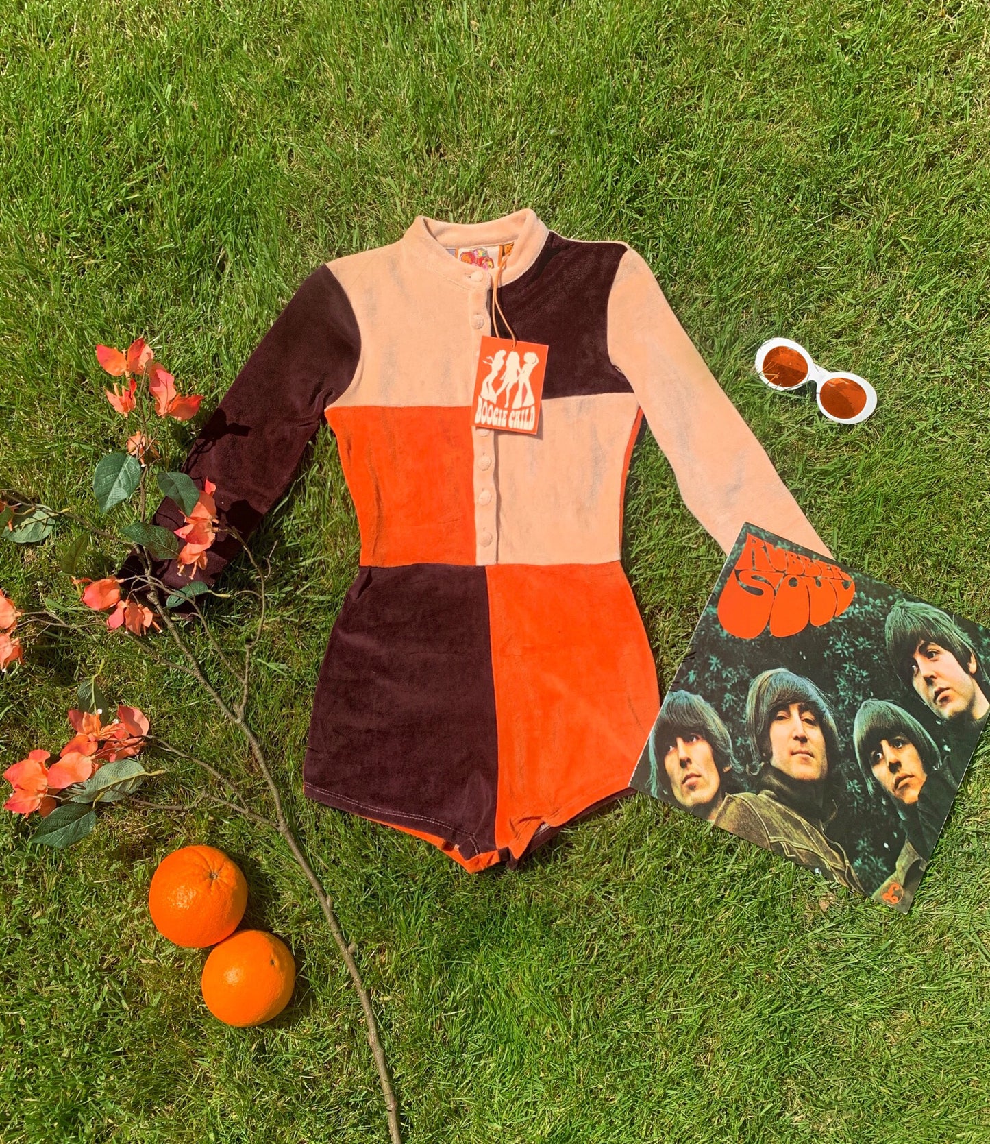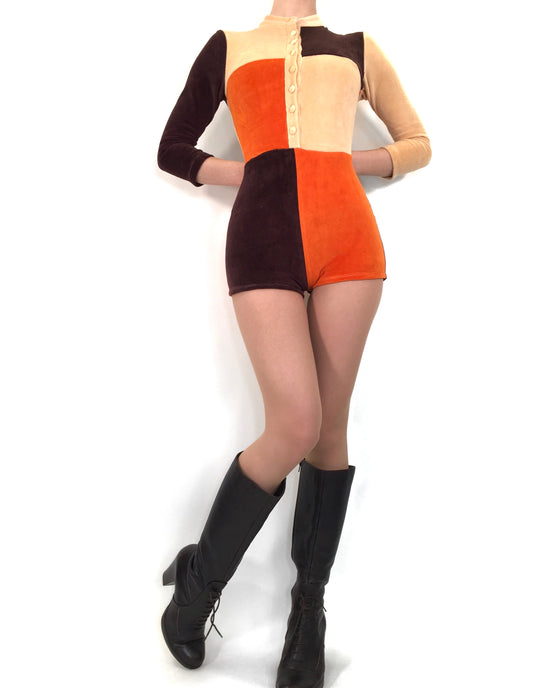 2. The Velvet Colour Block Playsuit in Cinnamon Girl