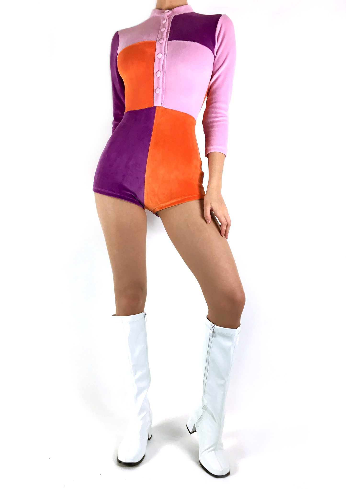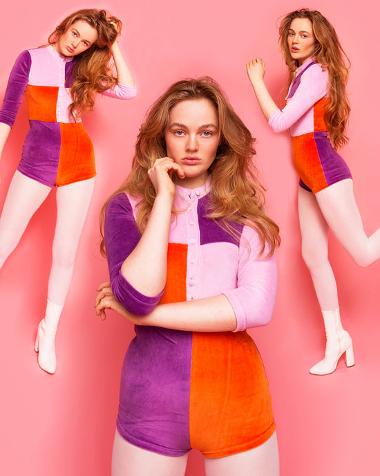 1. The Velvet Colour Block Playsuit in Cosmic Candy